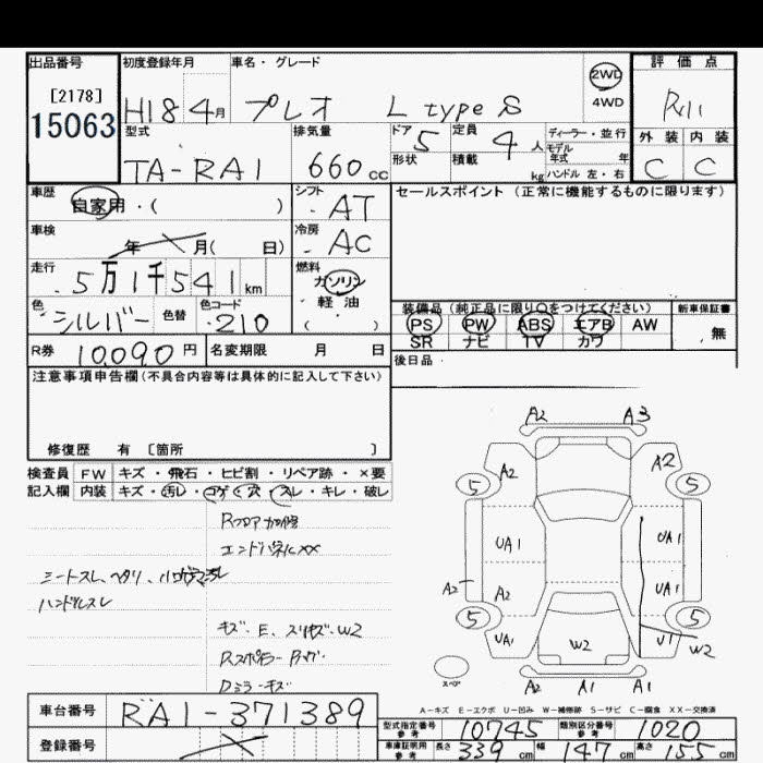 SUBARU PLEO L TYPE S - лот 15063