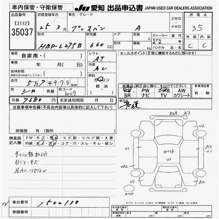 SUBARU PLEO A - лот 35037