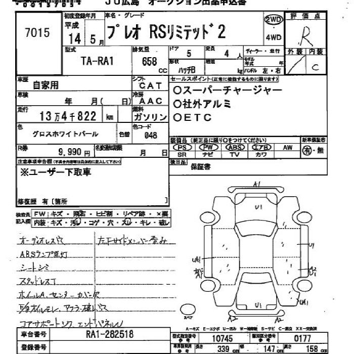 SUBARU PLEO RS LIMITED 2 - лот 7015