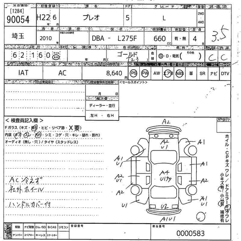SUBARU PLEO L - лот 90054