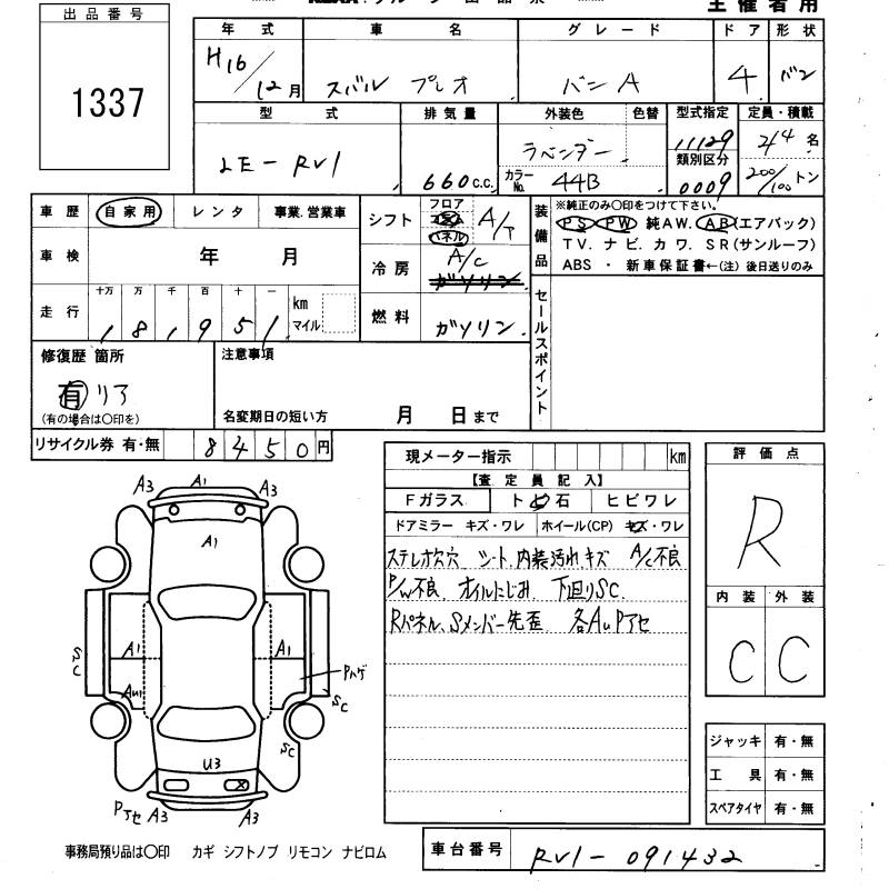SUBARU PLEO A - лот 1337