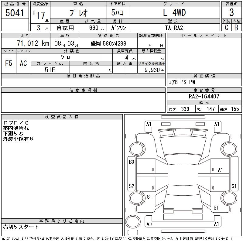 SUBARU PLEO L 4WD - лот 5041