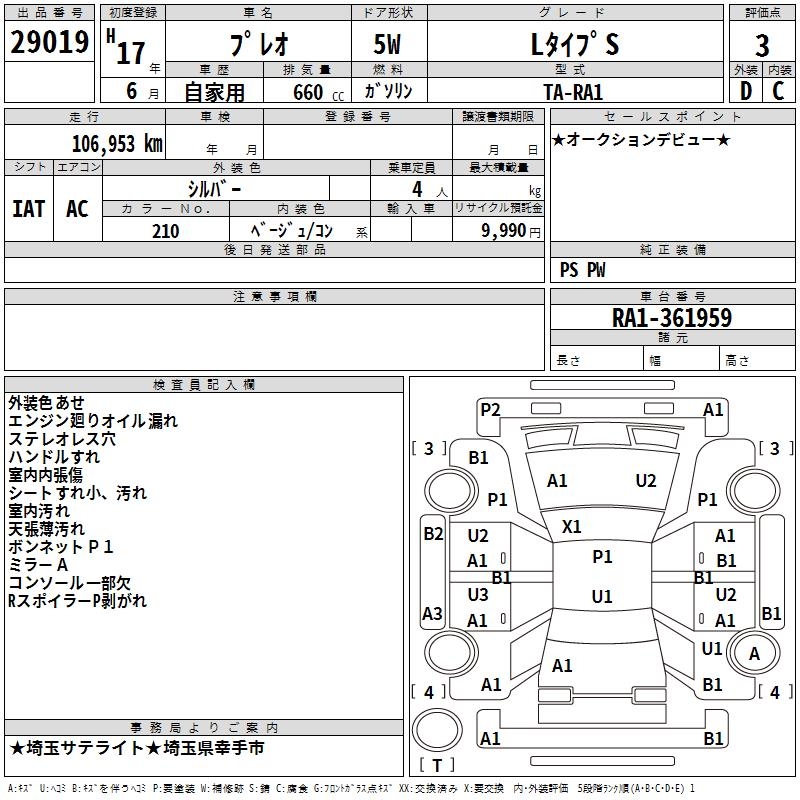 SUBARU PLEO L TYPE S - лот 29019