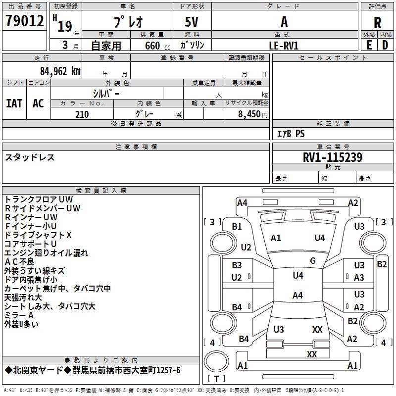 SUBARU PLEO A - лот 79012