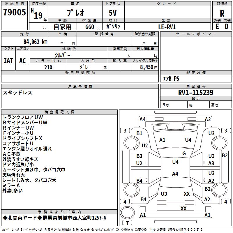 SUBARU PLEO - лот 79005
