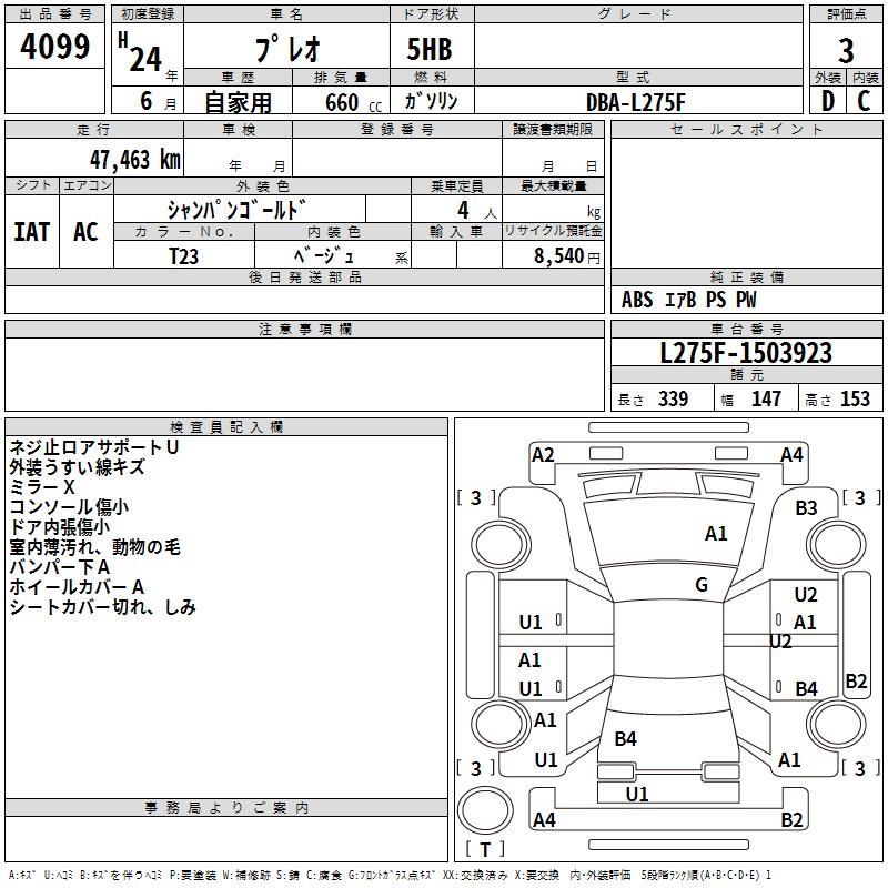 SUBARU PLEO - лот 4099