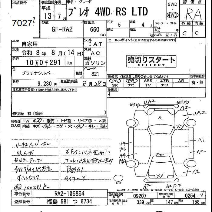 SUBARU PLEO 4WD RS LTD - лот 7027