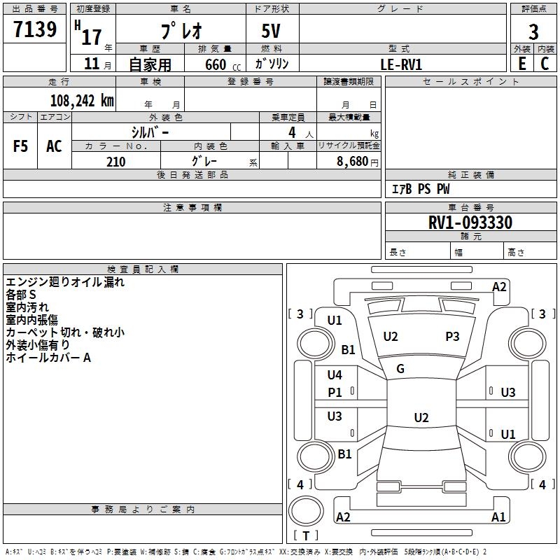 SUBARU PLEO - лот 7139