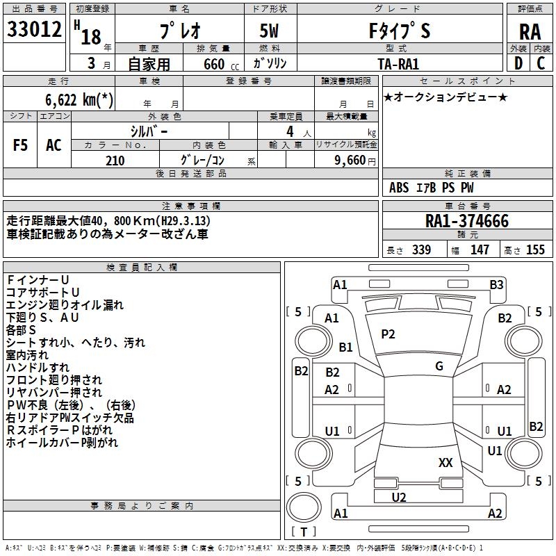 SUBARU PLEO F TYPE S - лот 33012