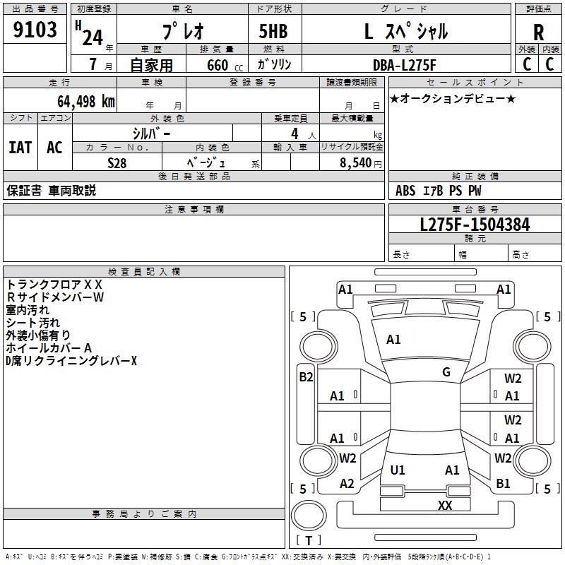 SUBARU PLEO L SPECIAL - лот 9103