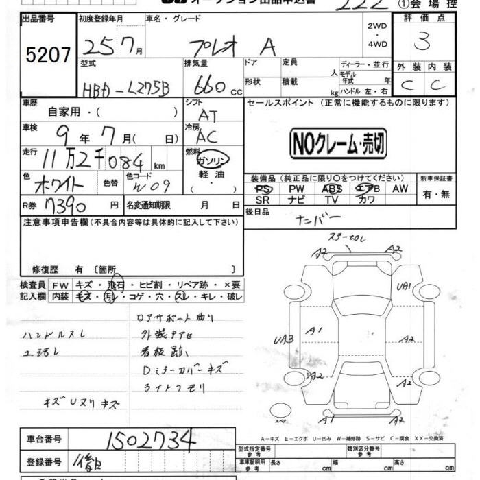 SUBARU PLEO A - лот 5207