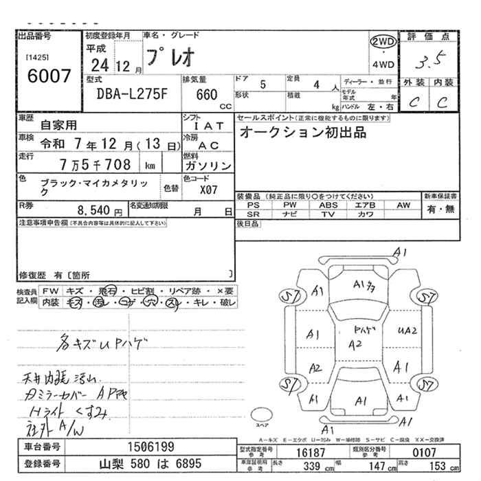 SUBARU PLEO - лот 6007