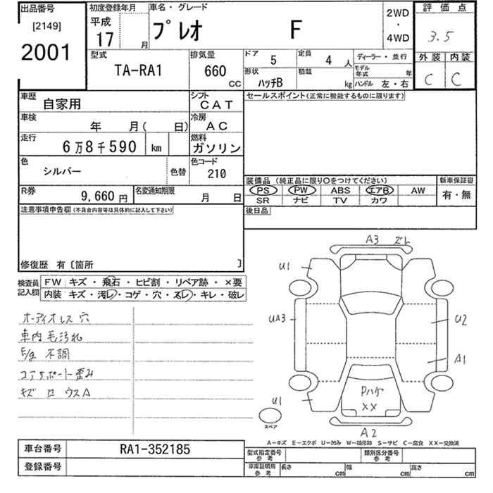 SUBARU PLEO F - лот 2001