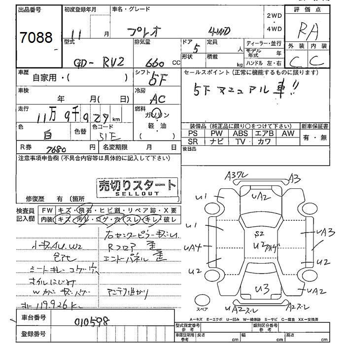 SUBARU PLEO 4WD - лот 7088