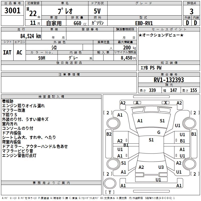 SUBARU PLEO - лот 3001