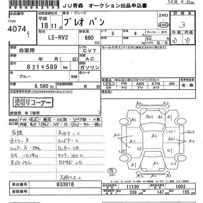 SUBARU PLEO - лот 4074