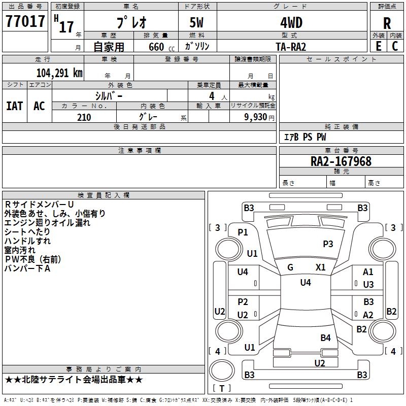 SUBARU PLEO - лот 77017