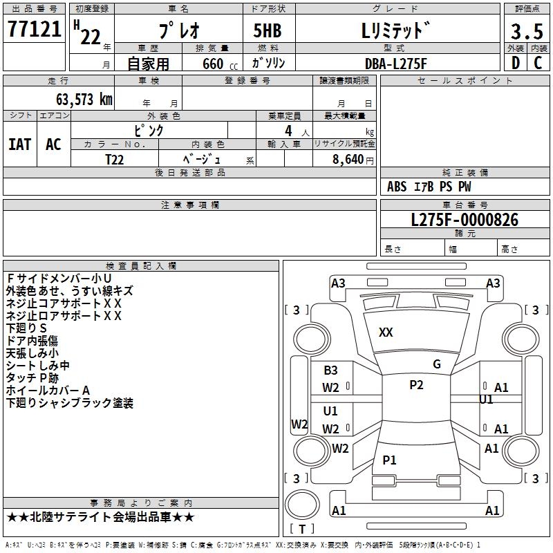 SUBARU PLEO - лот 77121