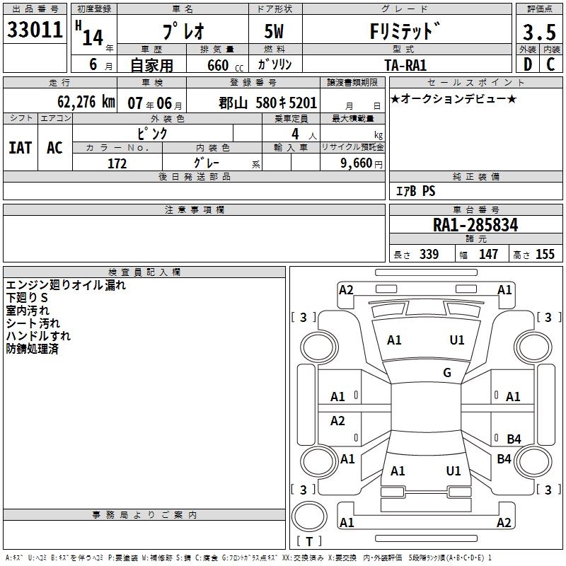 Все аукционы SUBARU PLEO