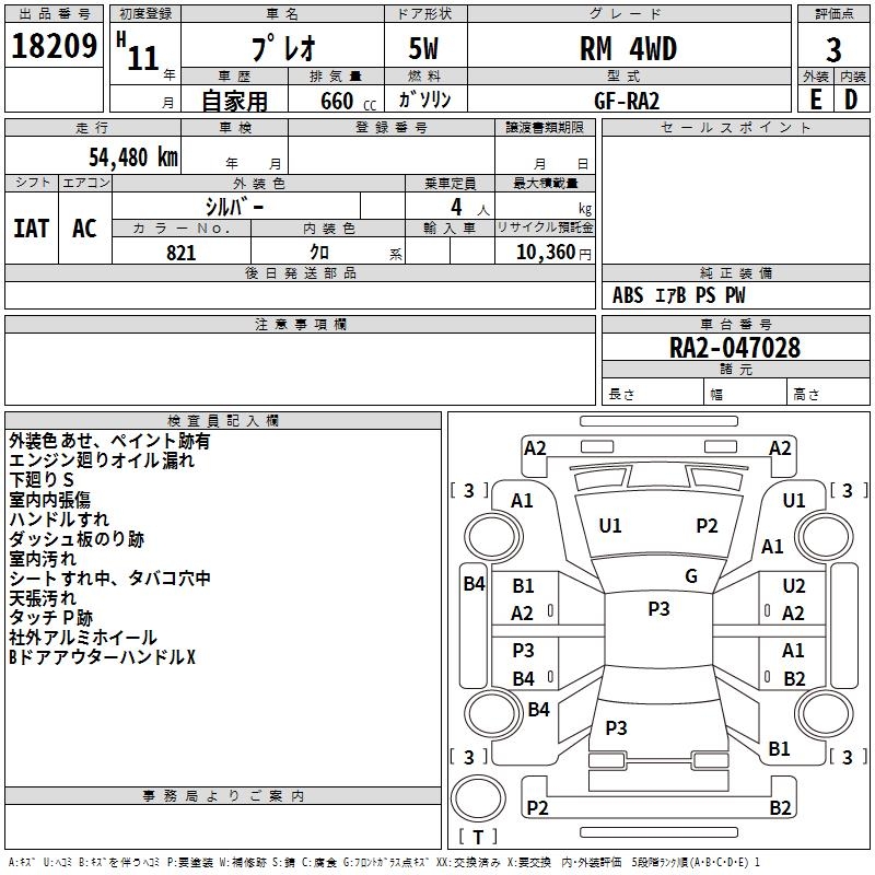 SUBARU PLEO - лот 18209