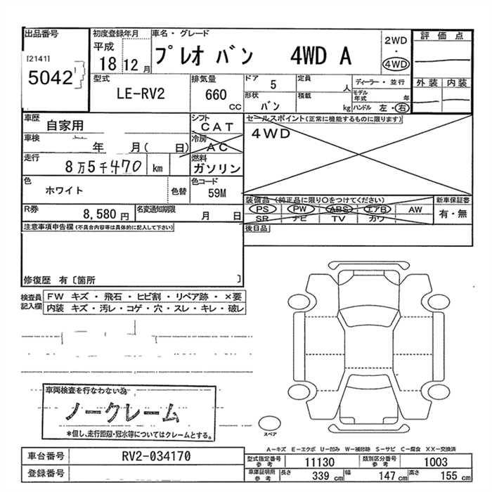 SUBARU PLEO - лот 5042