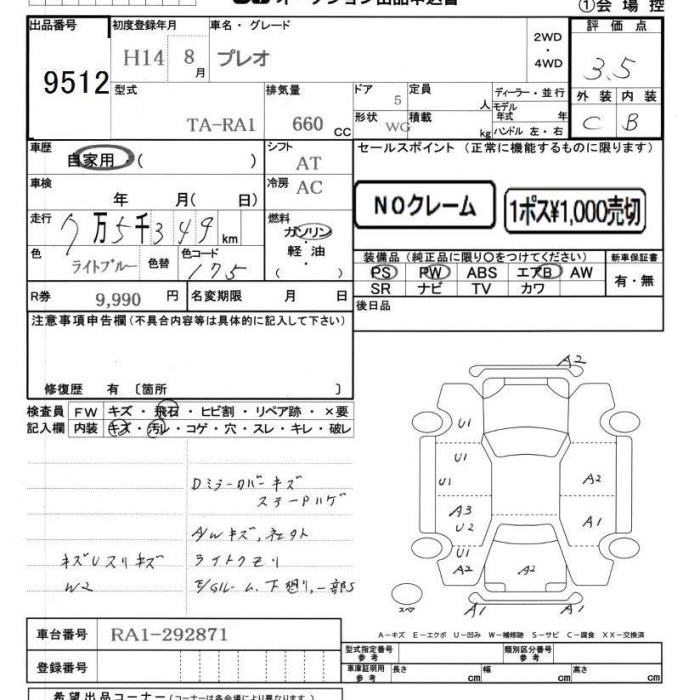 SUBARU PLEO - лот 9512