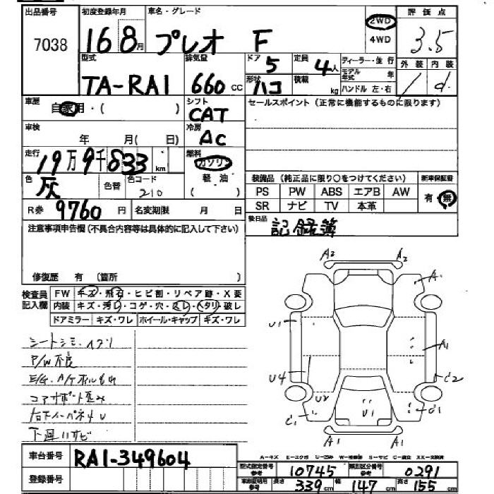 SUBARU PLEO - лот 7038
