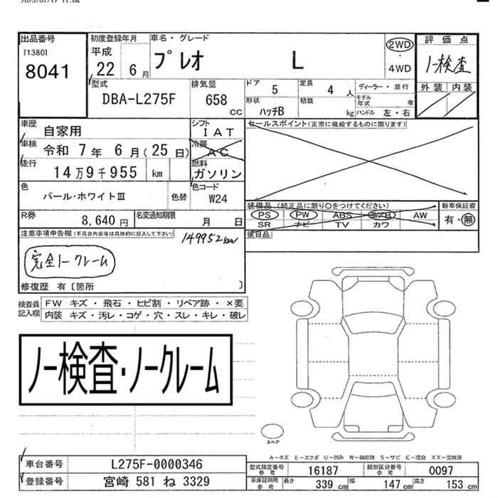 SUBARU PLEO - лот 8041