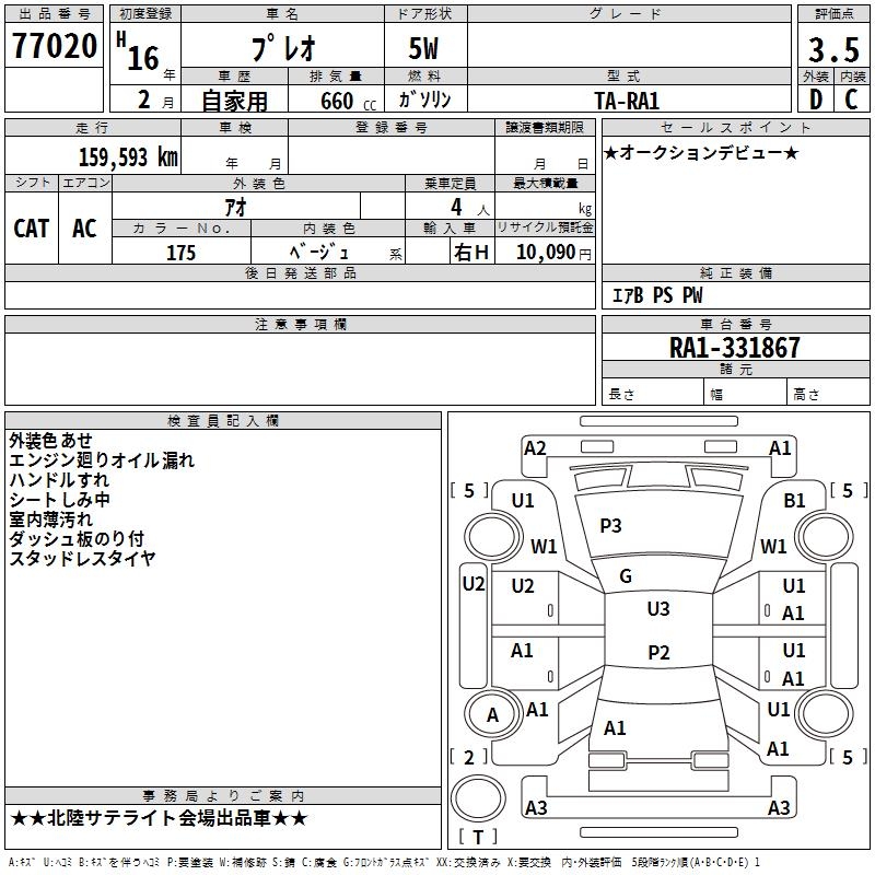 SUBARU PLEO - лот 77020