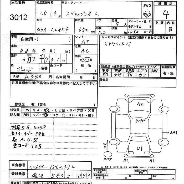 SUBARU PLEO - лот 3012
