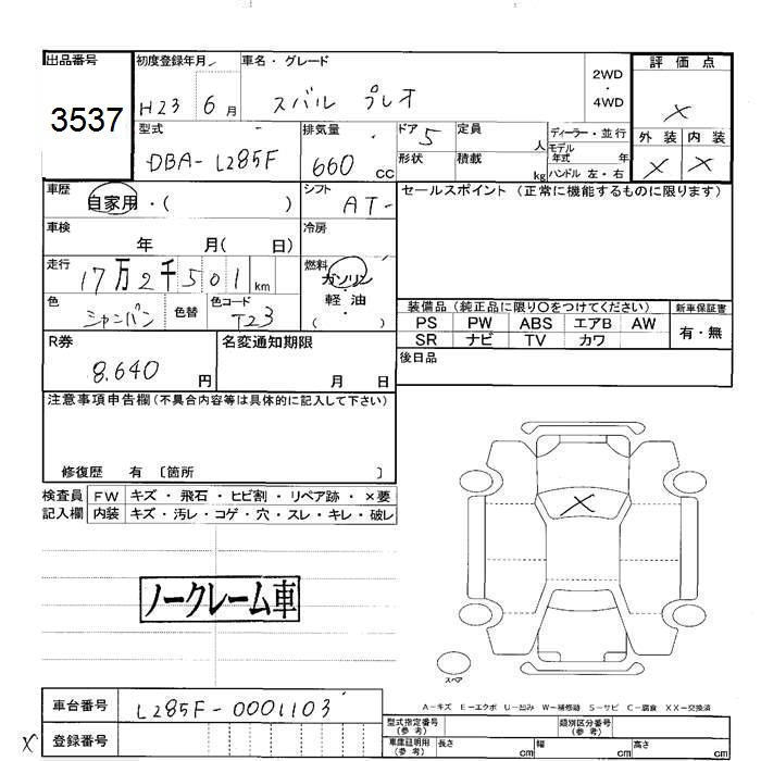 SUBARU PLEO - лот 3537