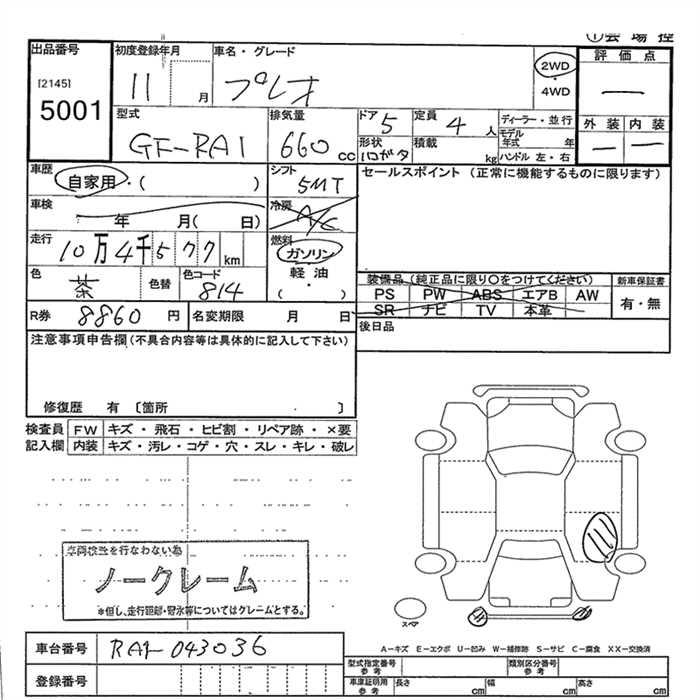 Все аукционы SUBARU PLEO