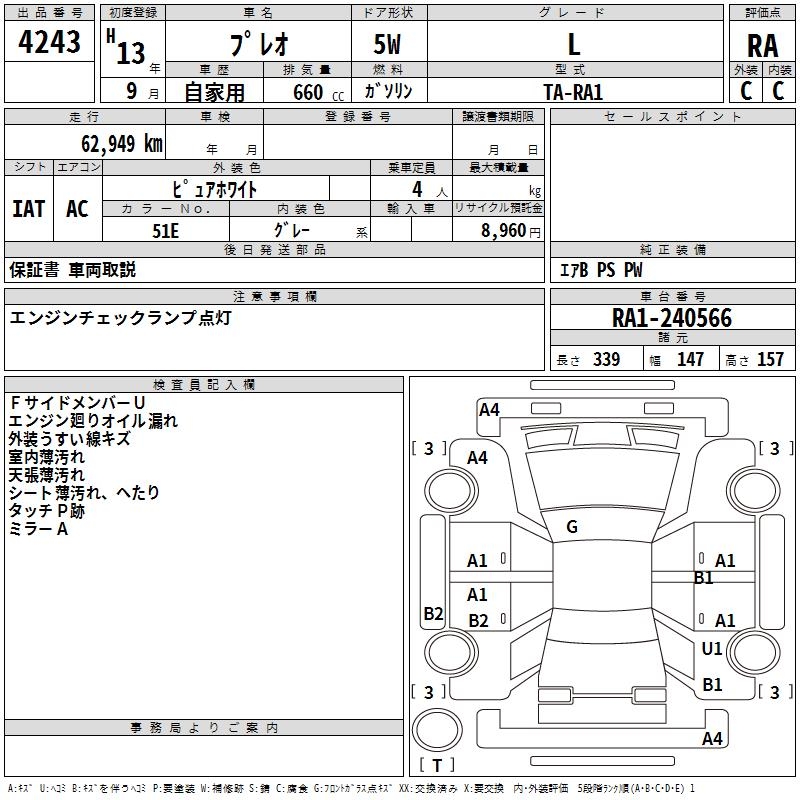 SUBARU PLEO - лот 4243