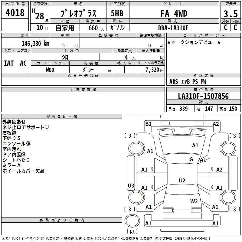 SUBARU PLEO PLUS - лот 4018