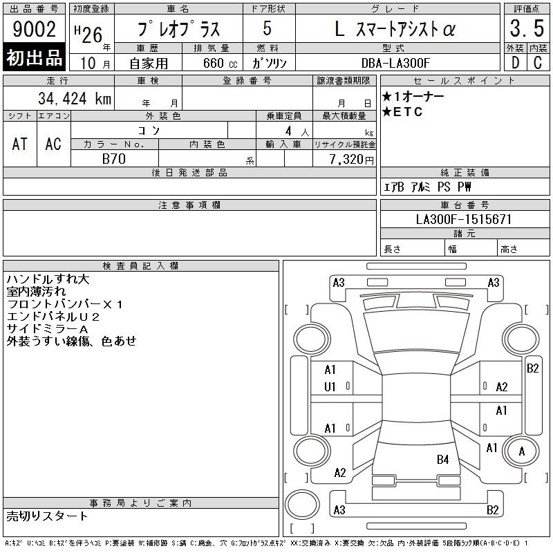 SUBARU PLEO PLUS - лот 9002