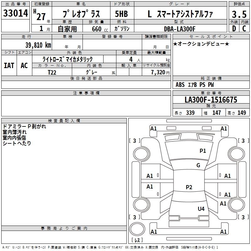 SUBARU PLEO PLUS - лот 33014