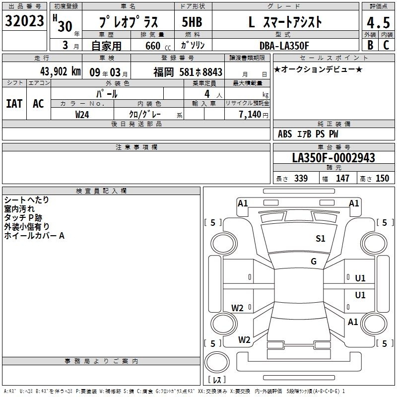 SUBARU PLEO PLUS - лот 32023