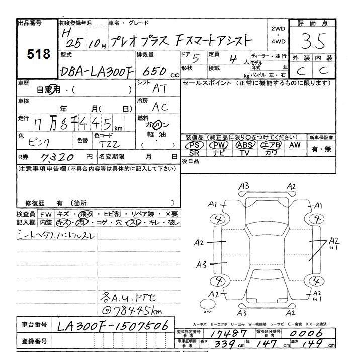 SUBARU PLEO PLUS - лот 518