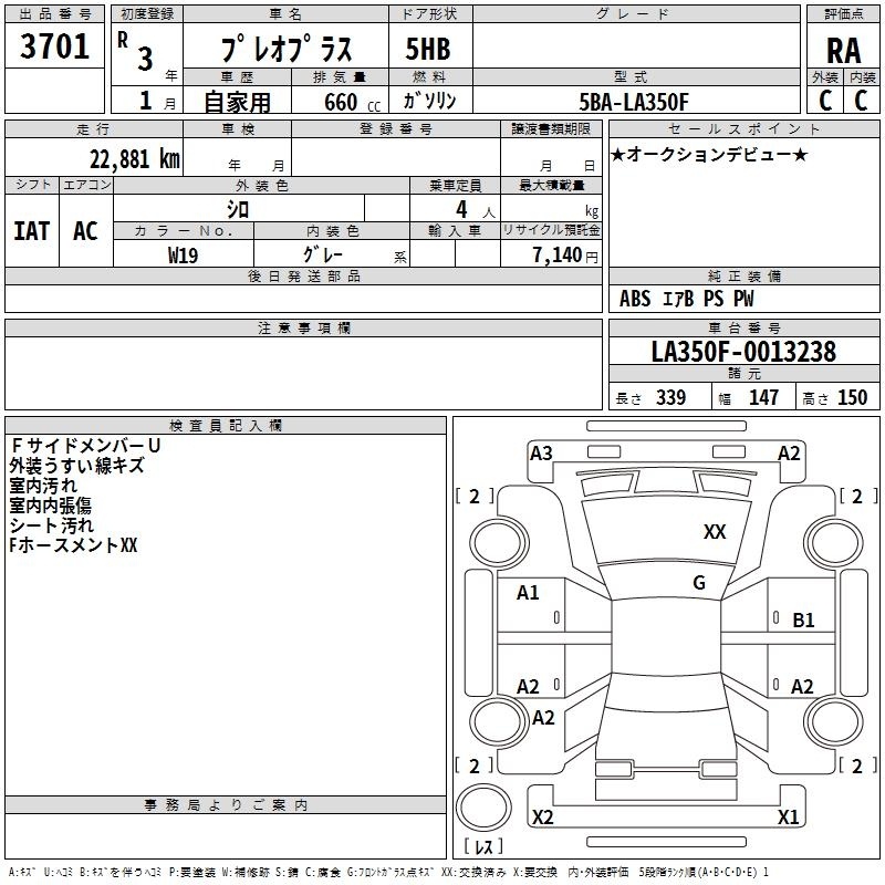 SUBARU PLEO PLUS - лот 3701