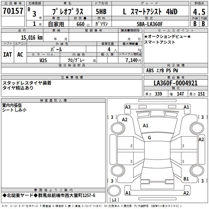 SUBARU PLEO PLUS - лот 70157