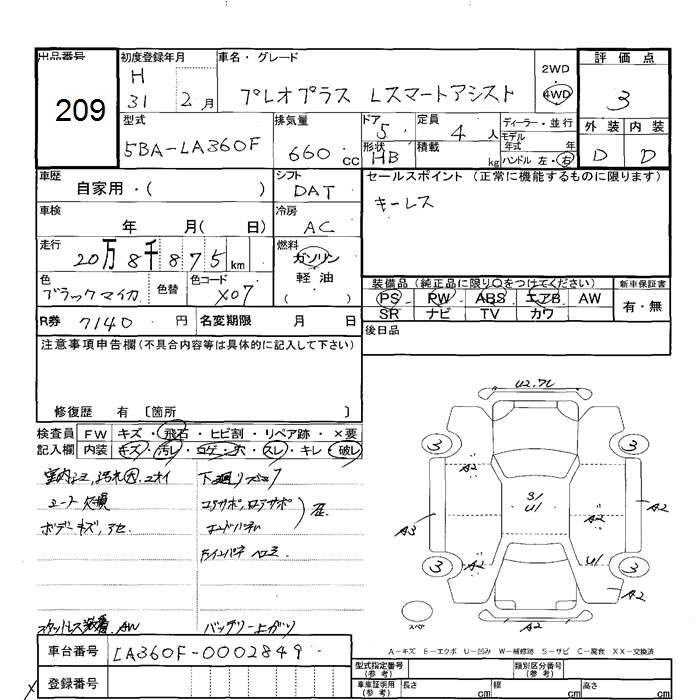 SUBARU PLEO PLUS - лот 209