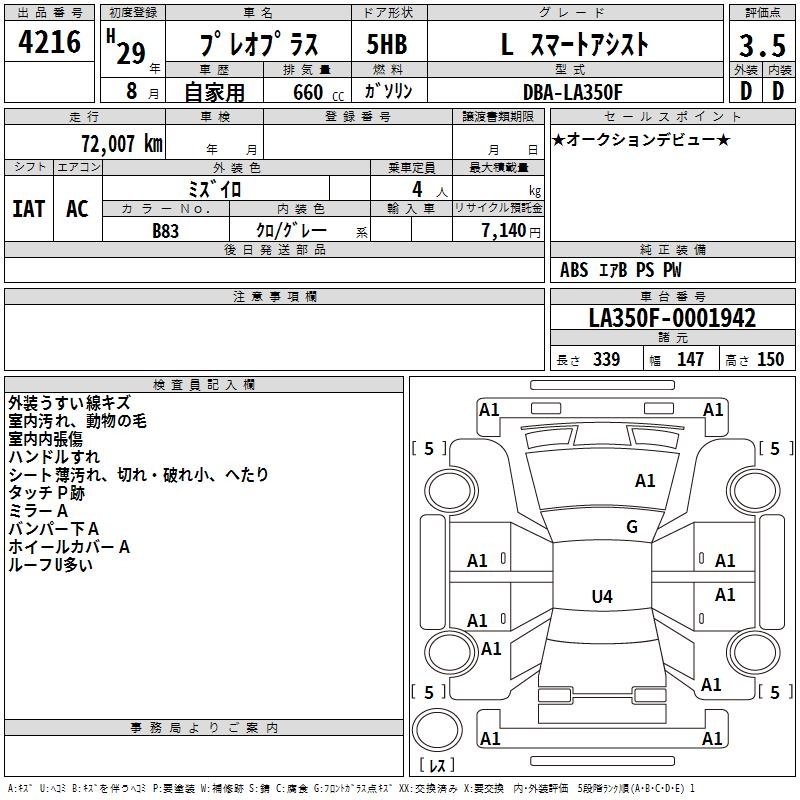SUBARU PLEO PLUS - лот 4216