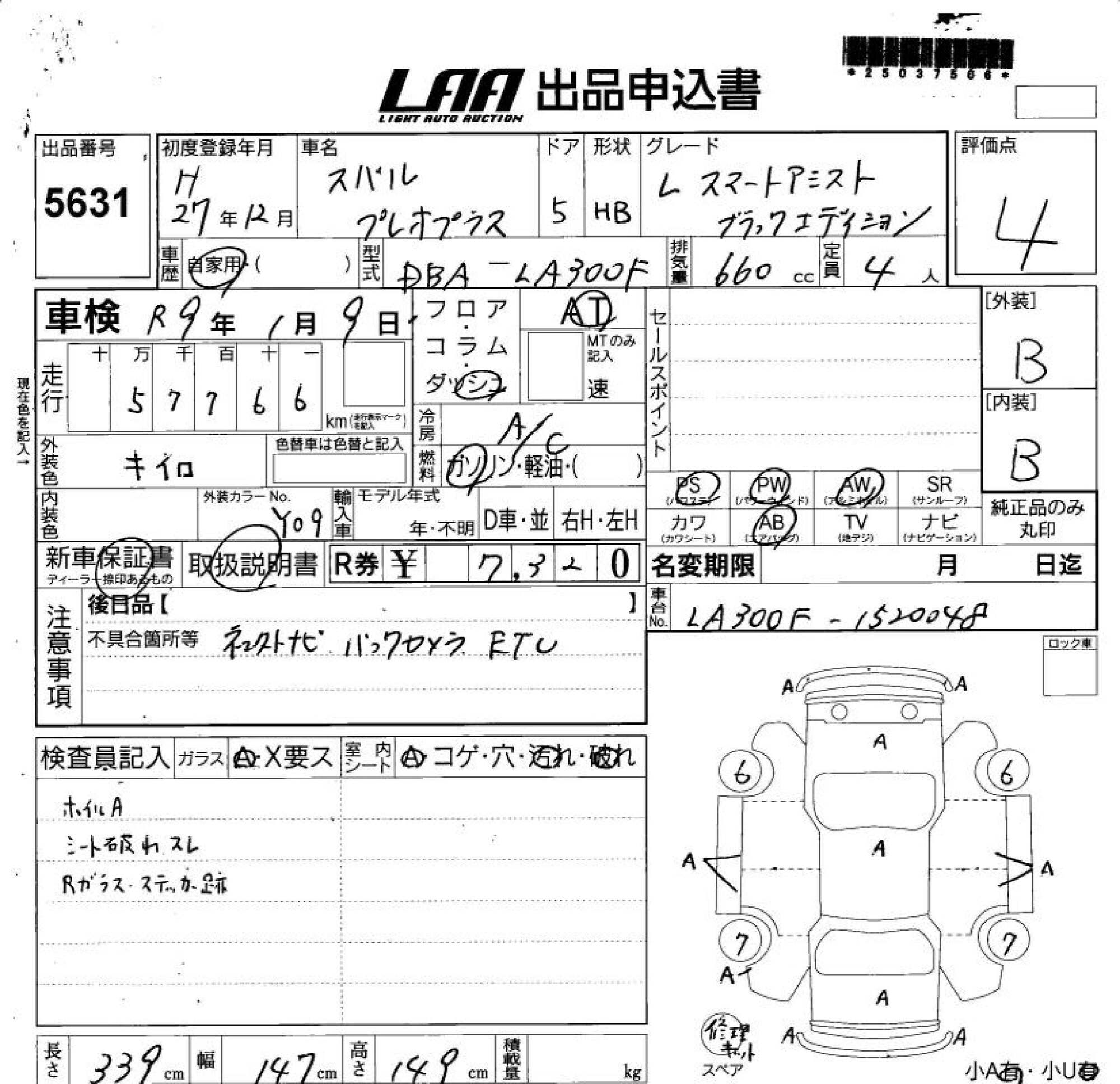 SUBARU PLEO PLUS - лот 5631