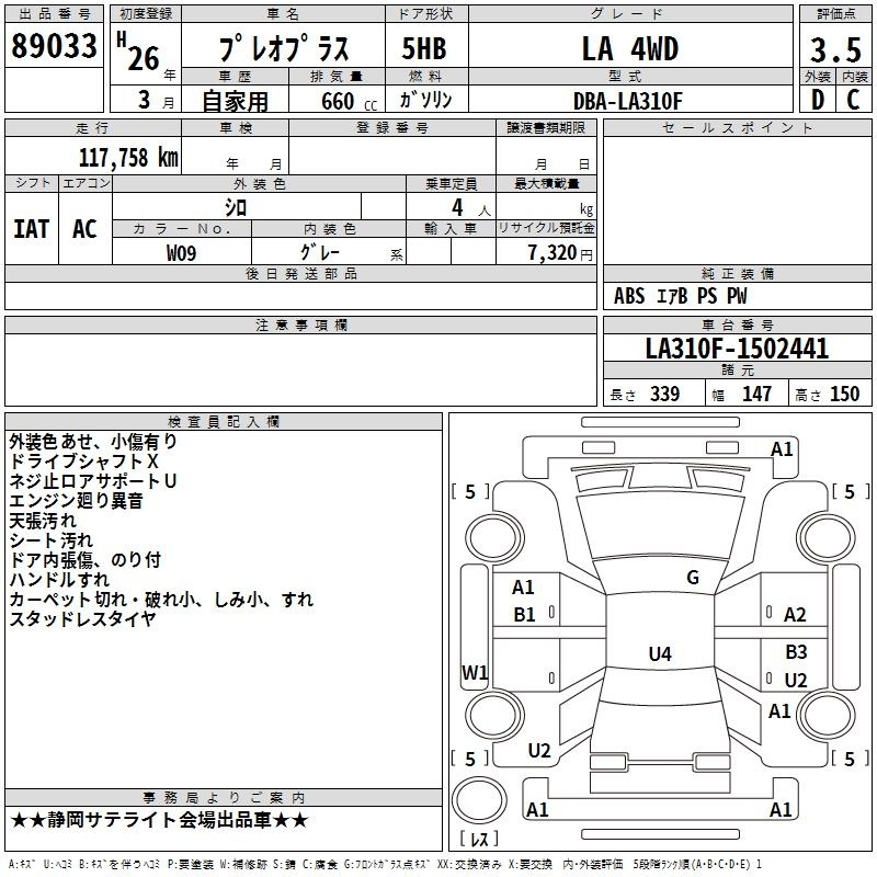 SUBARU PLEO PLUS - лот 89033