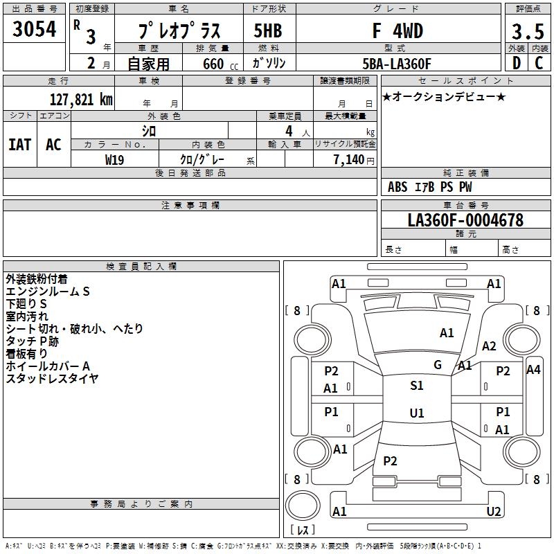 SUBARU PLEO PLUS - лот 3054