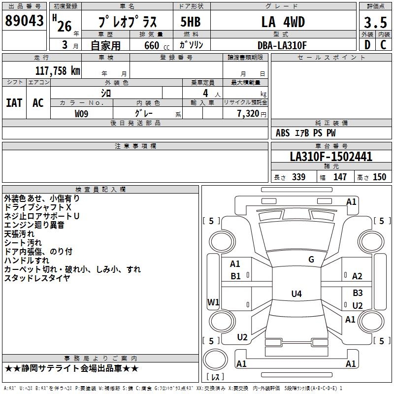 SUBARU PLEO PLUS - лот 89043