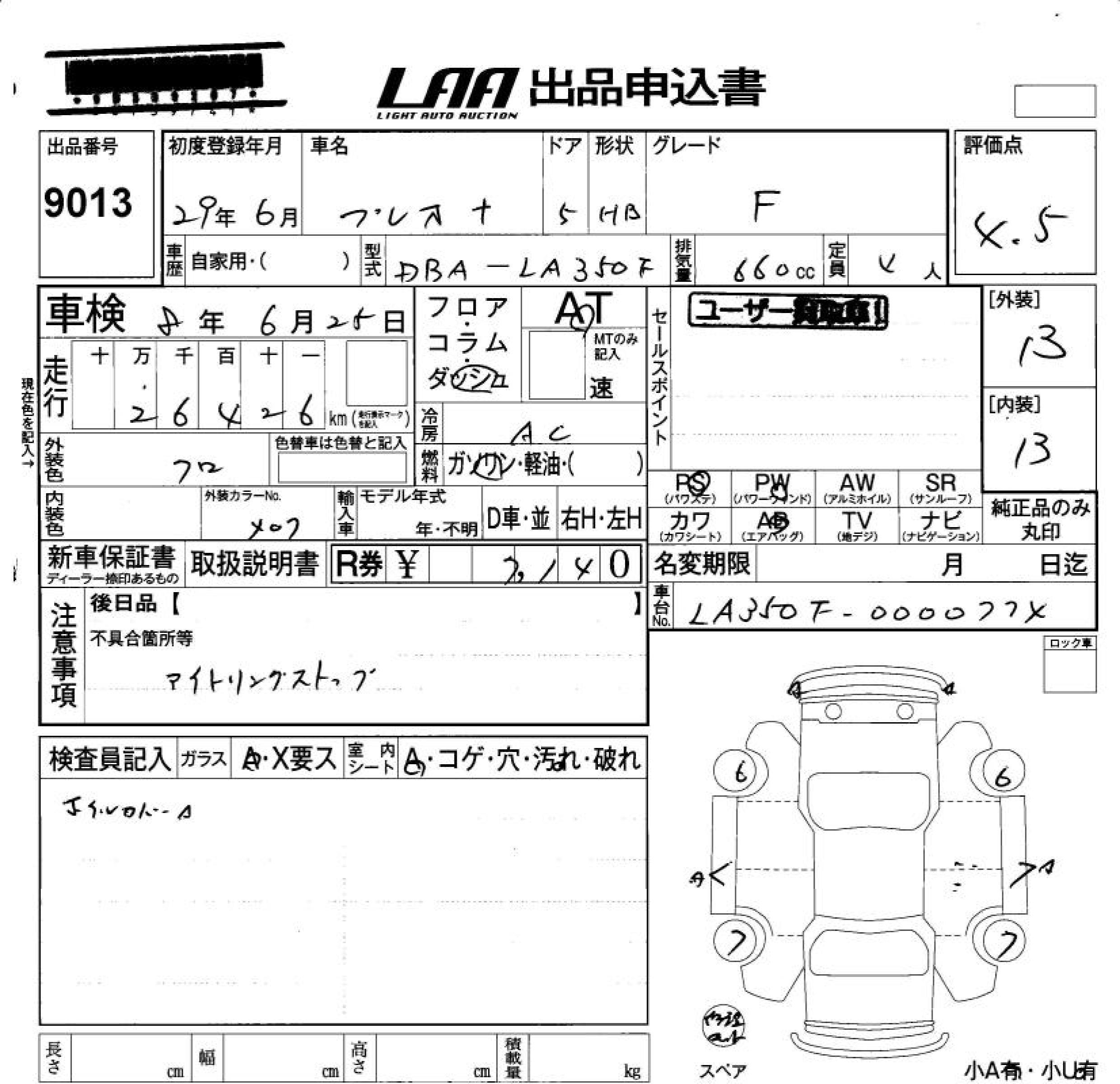 SUBARU PLEO PLUS - лот 9013