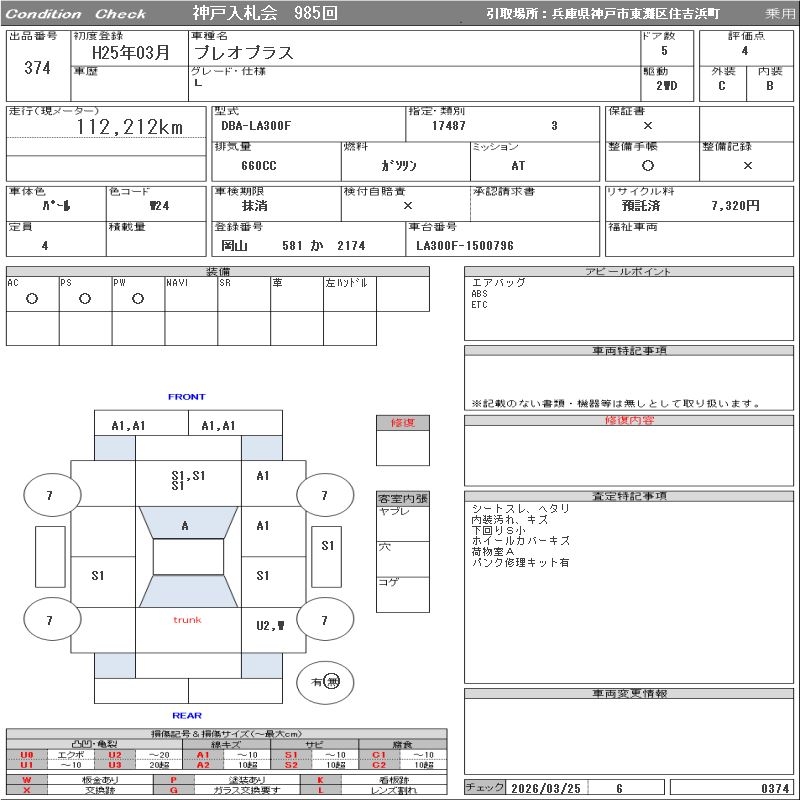 SUBARU PLEO PLUS - лот 374