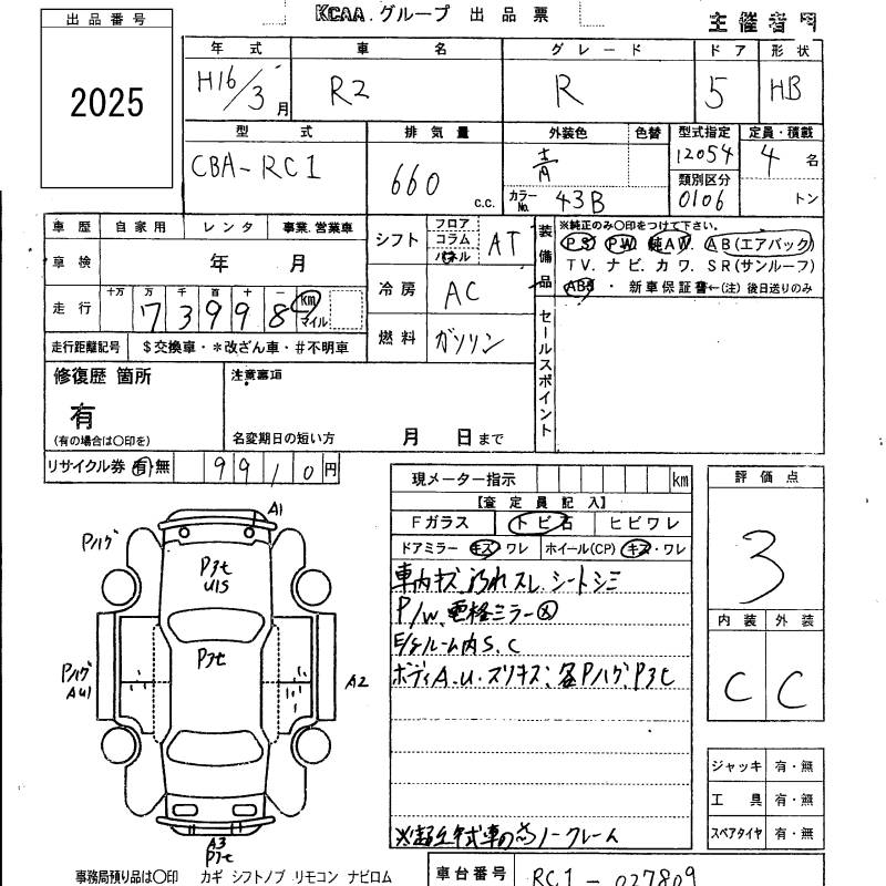 SUBARU R2 R - лот 2025