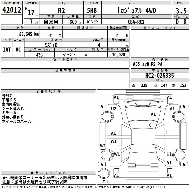 SUBARU R2 I CASUAL 4WD - лот 42012